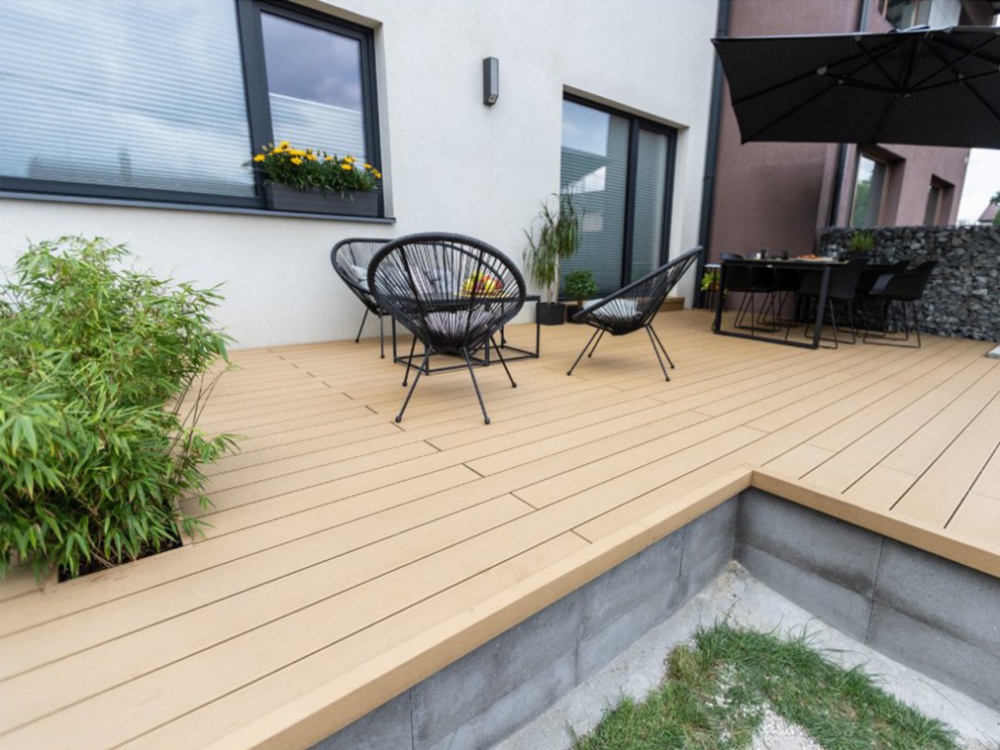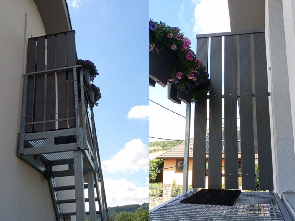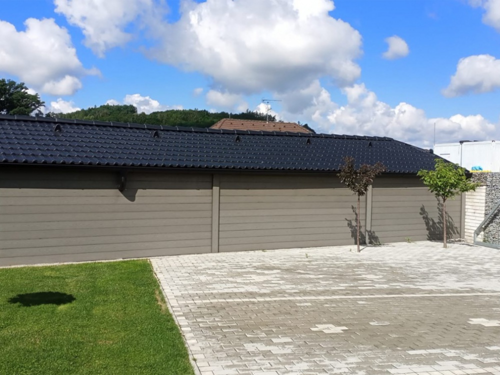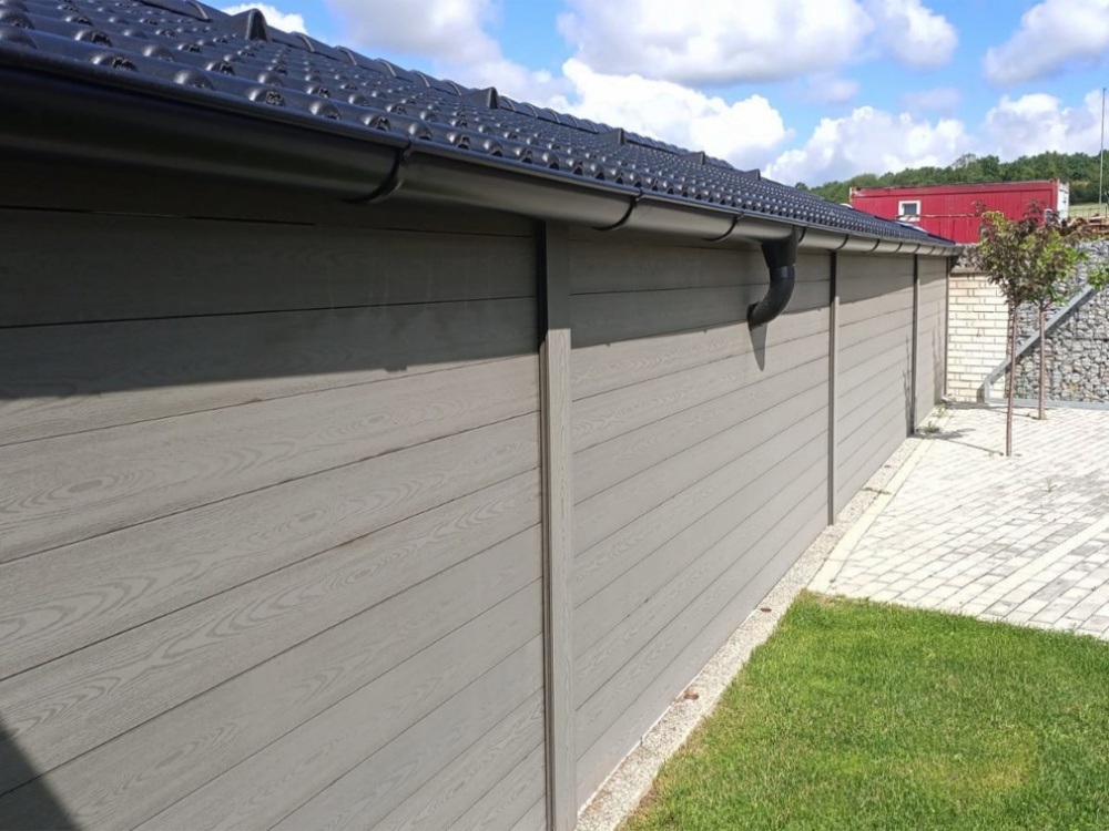 • Špičkový materiál: Zmes 60 % prírodných drevených vlákien a 40 % zdravotne nezávadného polyméru (HDPE) zaisťuje maximálnu pevnosť, farebnú stálosť a odolnosť voči UV žiareniu.