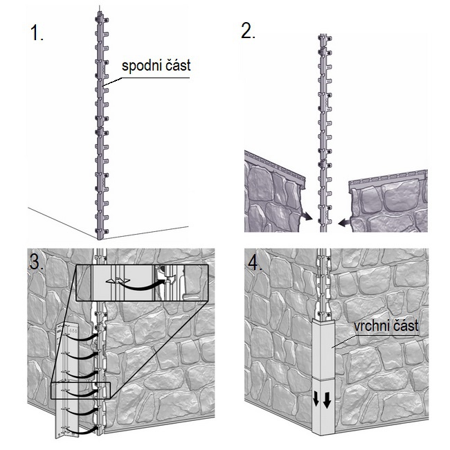 Dvojdielny vonkajší rohový profil NOVIK STONE RU202 slúži na estetické a funkčné zakončenie rohov budov pri inštalácii fasádnych obkladov radu NOVIK FIELD STONE.
